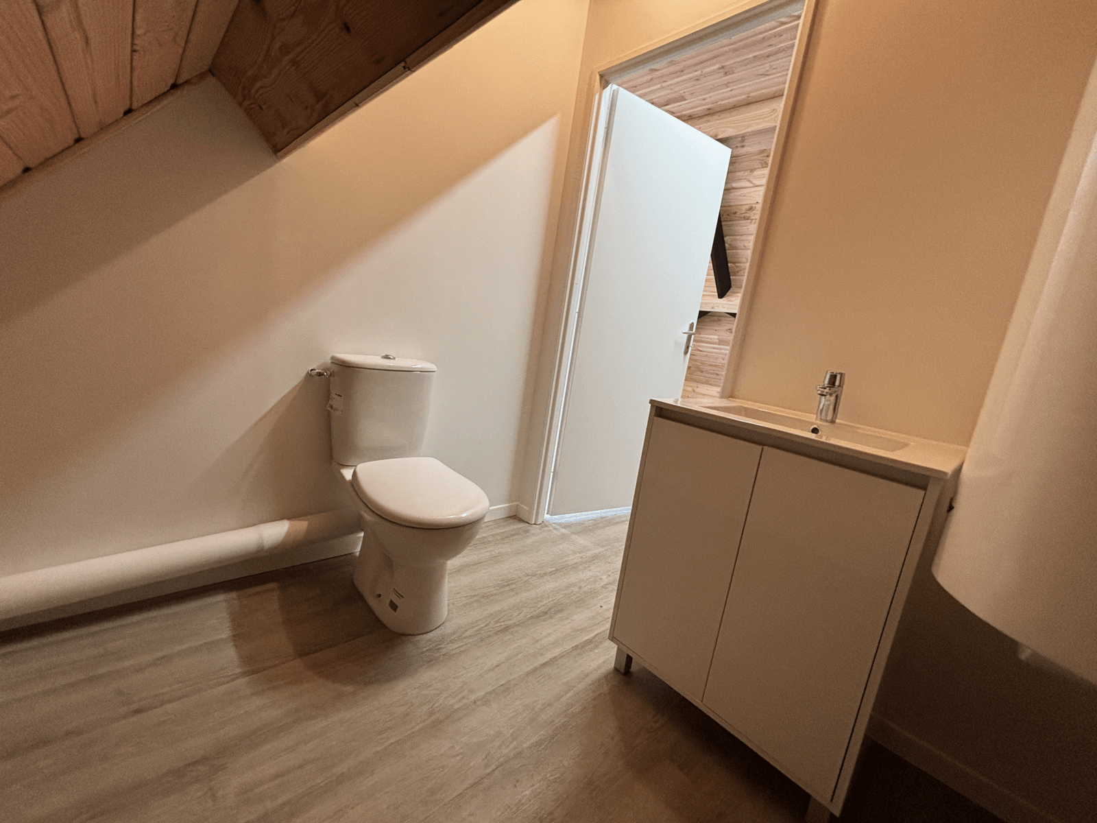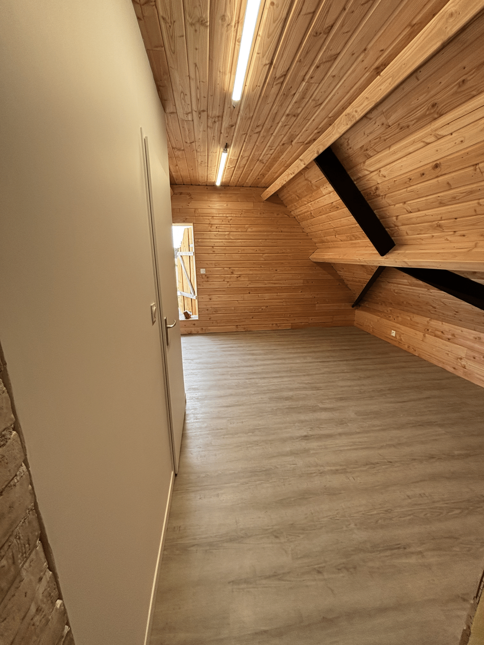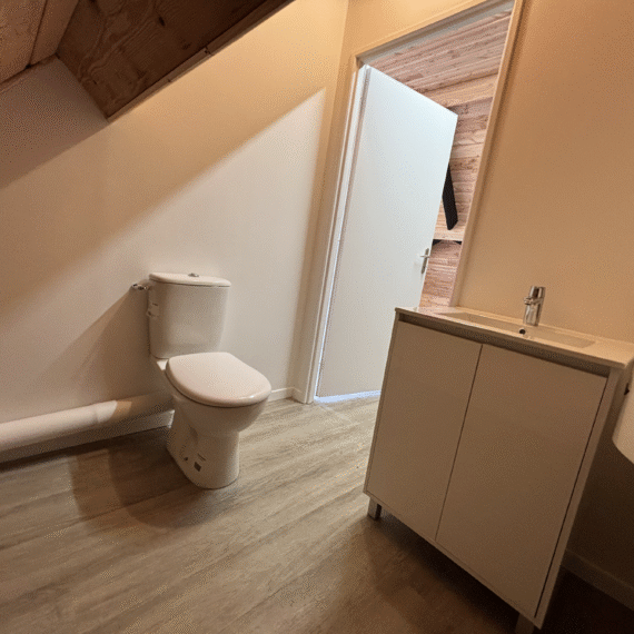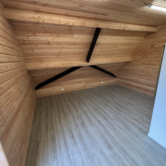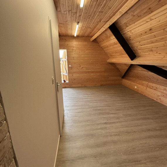 Création d’une salle de pause pour les salariés d’une boucherie en Sarthe. Le dirigeant souhaité un lieu convivial, propice aux discussions et à la détente. Notre client opte pour du bois et un espace sanitaire individuel.